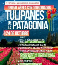 Nuestras propuestas ** CAMPO DE TULIPANES ** **ARGENTINA ** Nacional El Bolsón + info ** MENDOZA ARGENTINA ** Nacional Destinos Termales + info ** NORTE ARGENTINO ** Nacional Salta y Jujuy + info SALTA Nacional Salta y Jujuy + info LA GRAN AVENTURA - CATARATAS ARGENTINAS Nacional Iguazú + info * RAFTING RIO HUAHUM * Nacional San Martin de Los Andes + info SAN MARTIN DE LOS ANDES Nacional San Martin de Los Andes + info ** CAMPO DE TULIPANES ** ARGENTINA ** Nacional San Carlos de Bariloche + info **BARILOCHE, VILLA LA ANGOSTURA Y SUR DE CHILE ** Nacional San Carlos de Bariloche + info